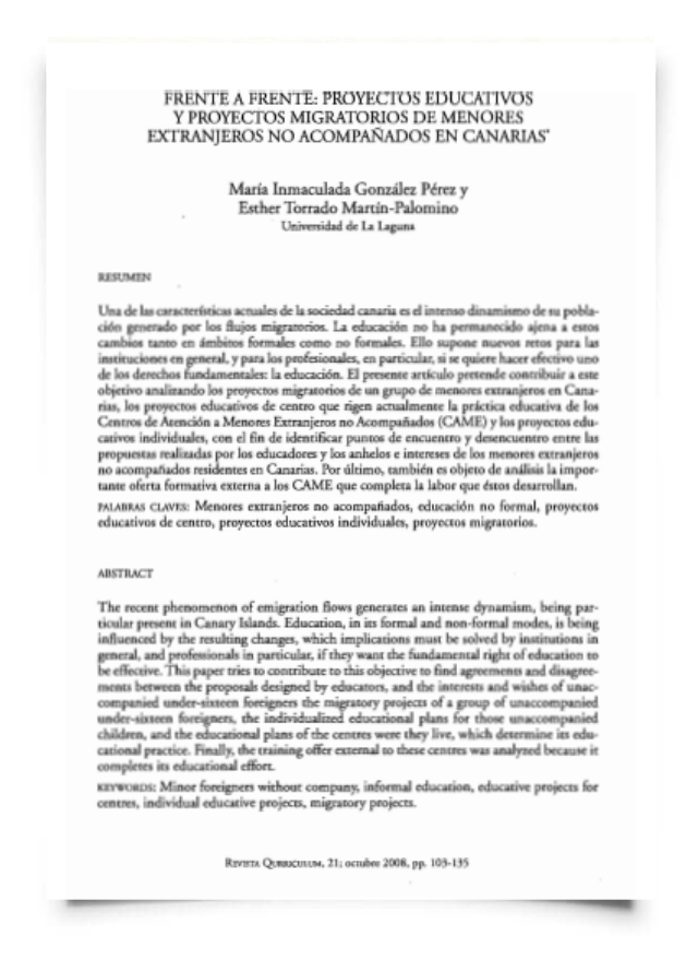 Frente a frente: Proyectos educativos y proyectos migratorios de menores extranjeros no acompañados en Canarias
