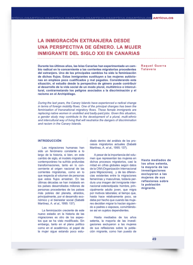 La inmigración extranjera desde una perspectiva de género. La mujer inmigrante del siglo XXI en Canarias