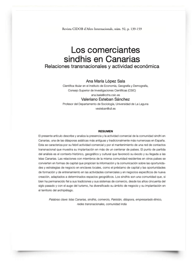 Los comerciantes sindhis en Canarias: Relaciones transnacionales y actividad económica